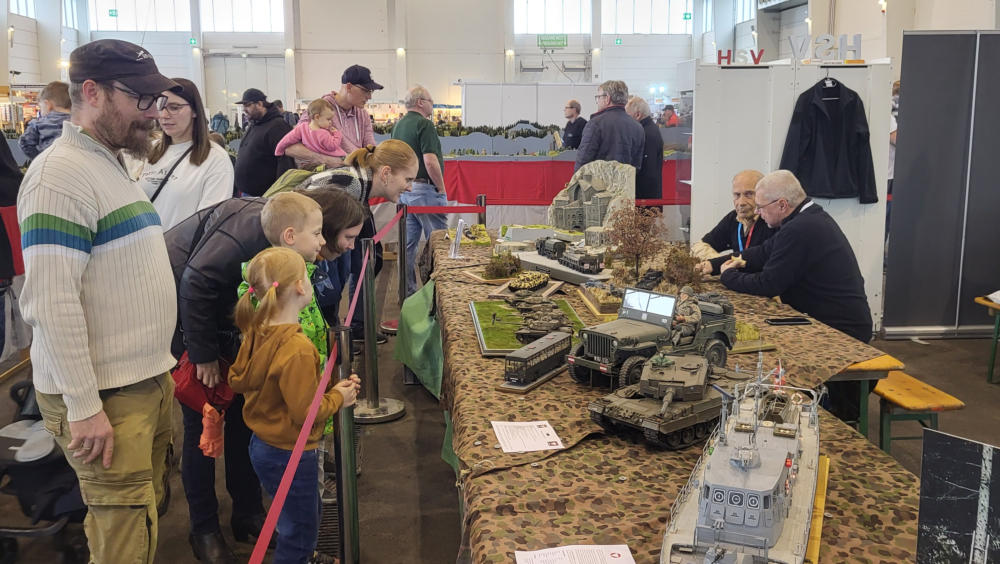Luft gezeigt. In der Halle vier wurden Modelleisenbahnanlagen, der Standmodellbau und Dampfmaschinen ausgestellt.